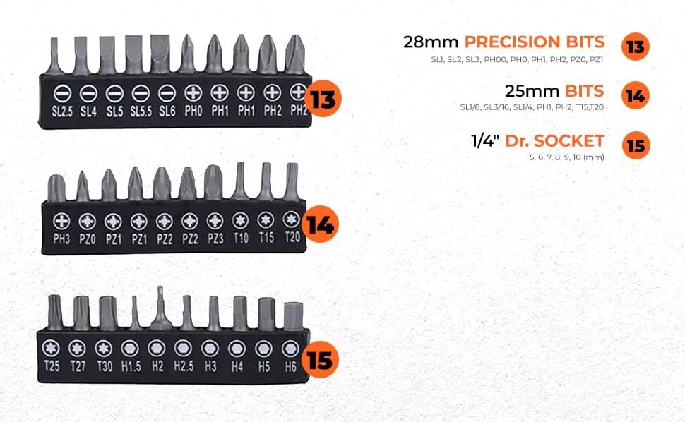 - 25mm Bits with CRV, Bit Driver, Two Tone Handle Screwـdriver, SL5x75, SL6x100mm, PH1x75, PH2x100mm with 6150CRV blade Hex Key, 1.5-10mm