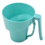 One-handed Flour Sifter Plastic Sieve Cup Screen Mesh Powder Flour Sieve.Uses a simple squeeze activated handle to sift your powder baking ingredients. leaving one hand completely free. And the inside of Sifter wiith measurement. The simple squeeze action easily breaks up clumps and aerates ingredients. without the aggressive cranking and shaking that most sifters need.